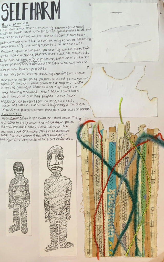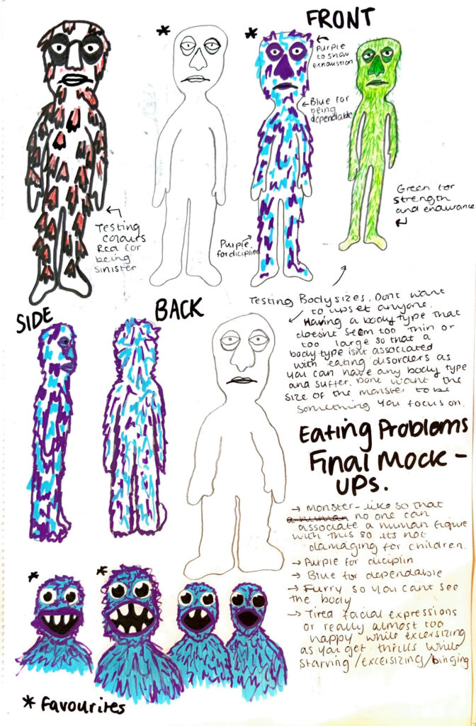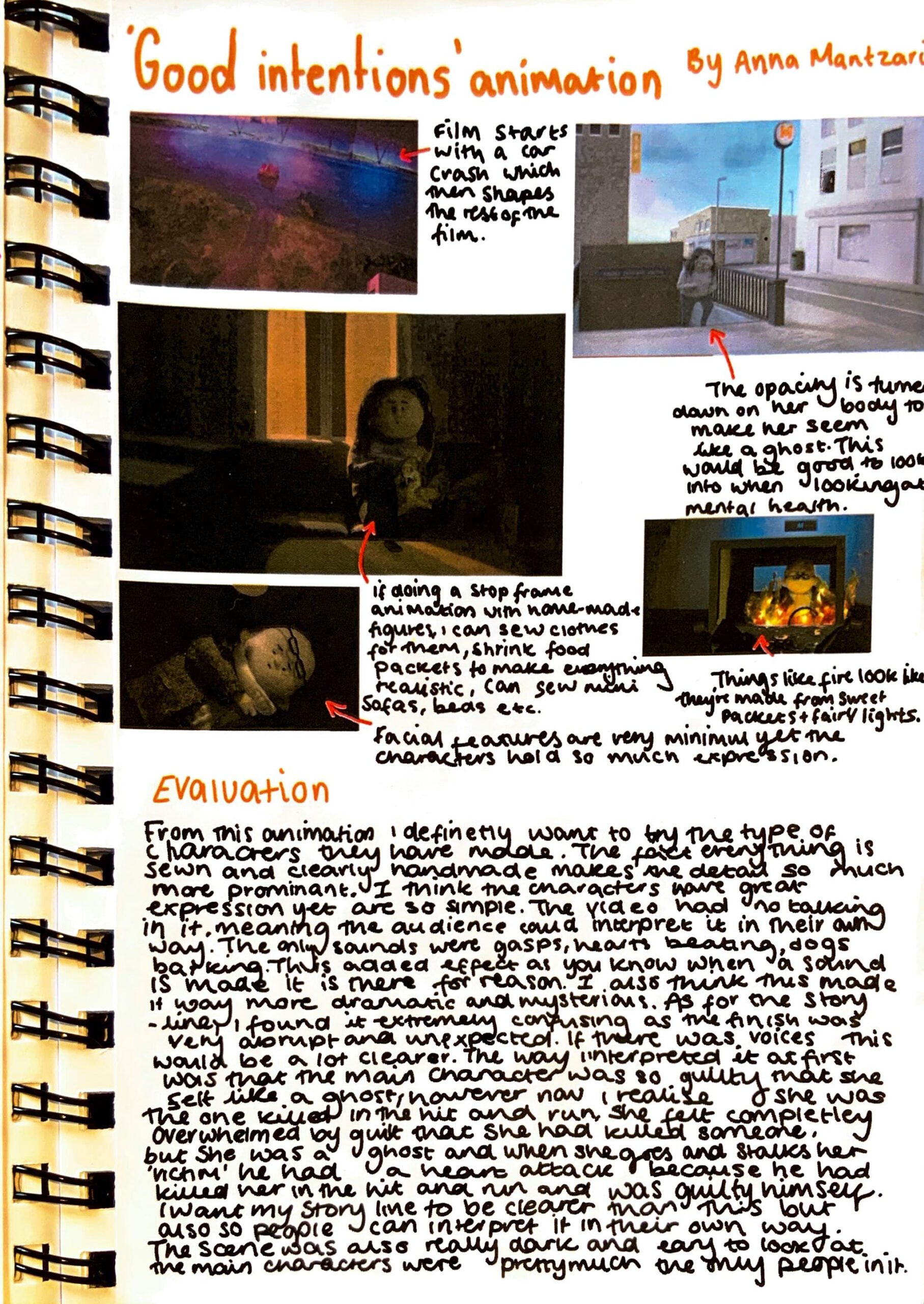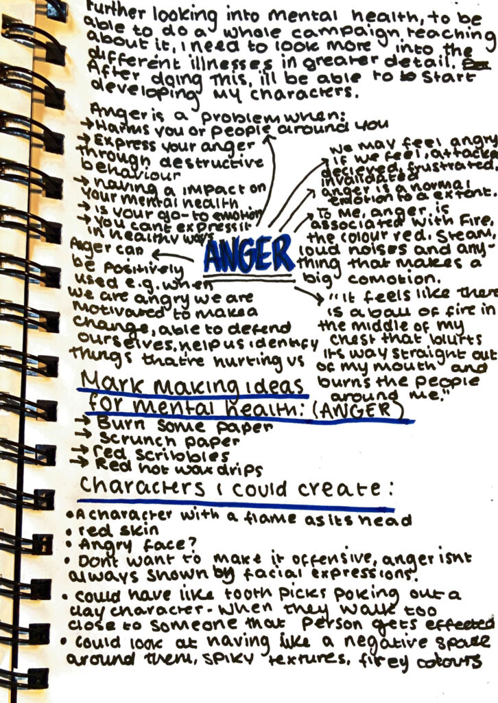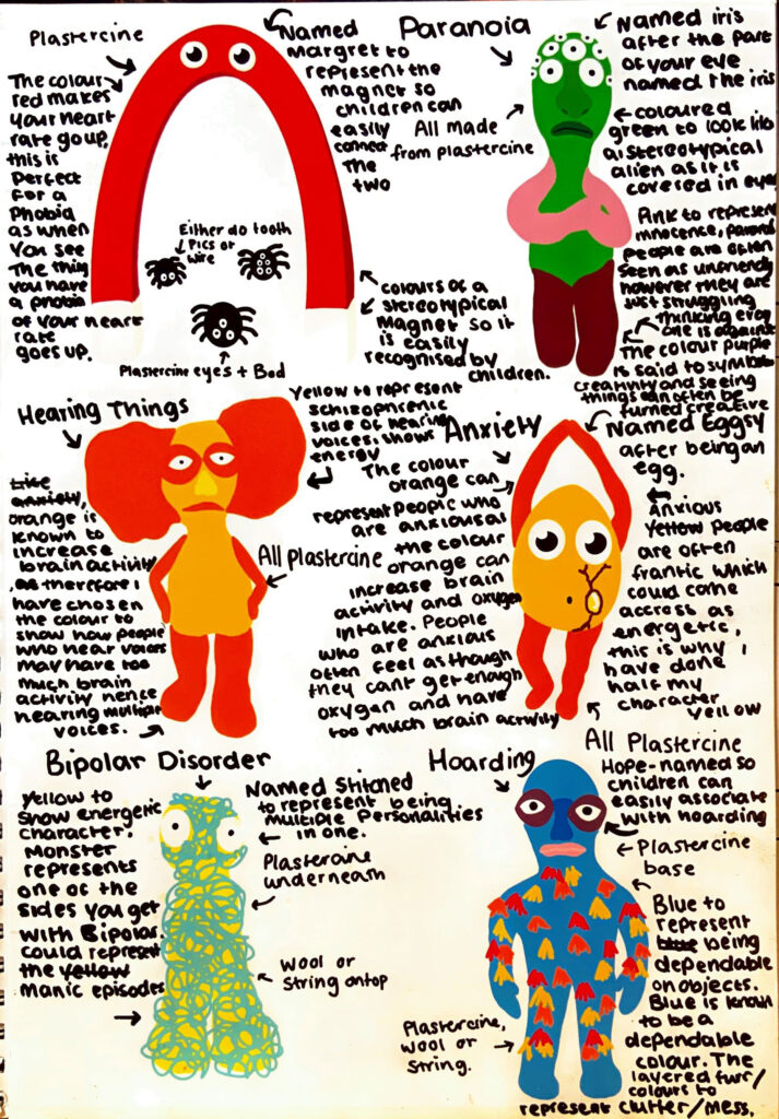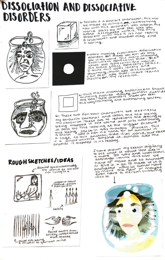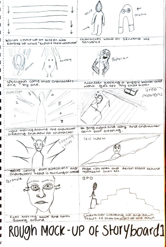 Children’s Mental Health Animation Project On this page you will find my final piece of animation as well as extracts from my sketch book and journal.