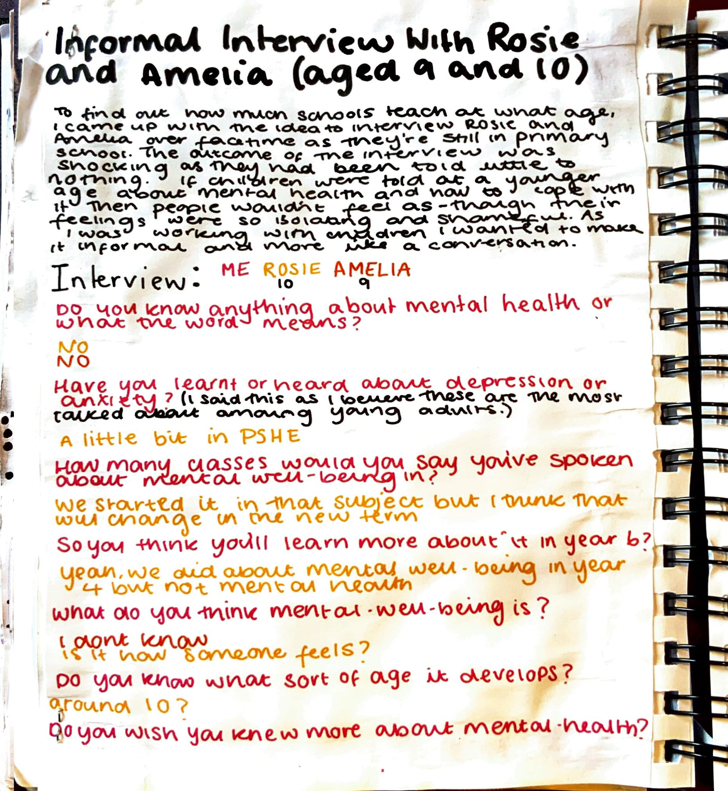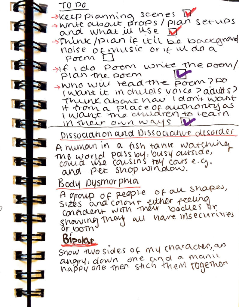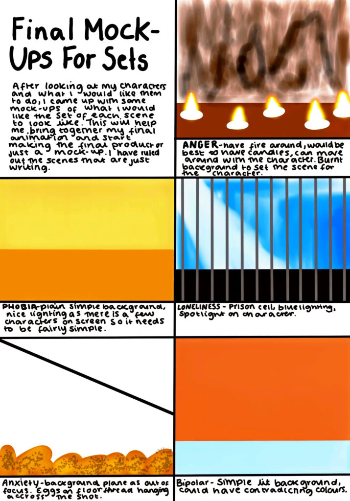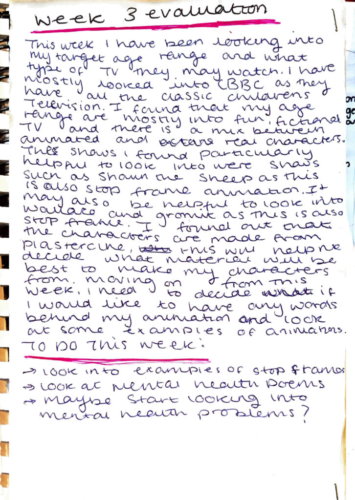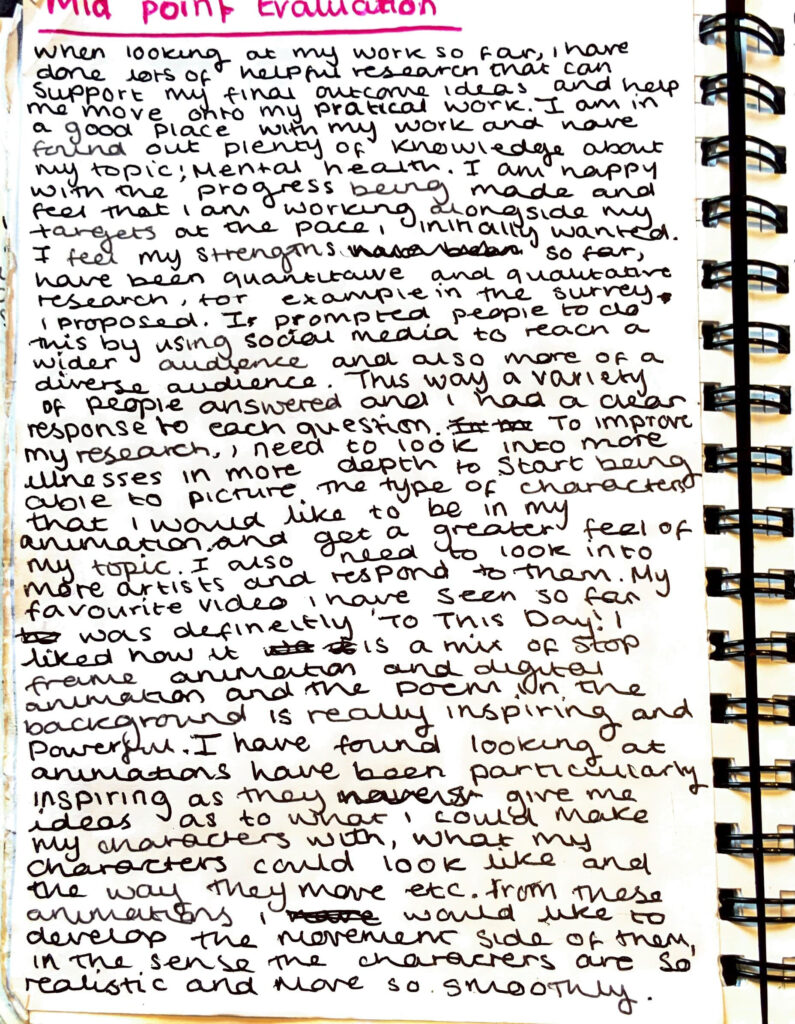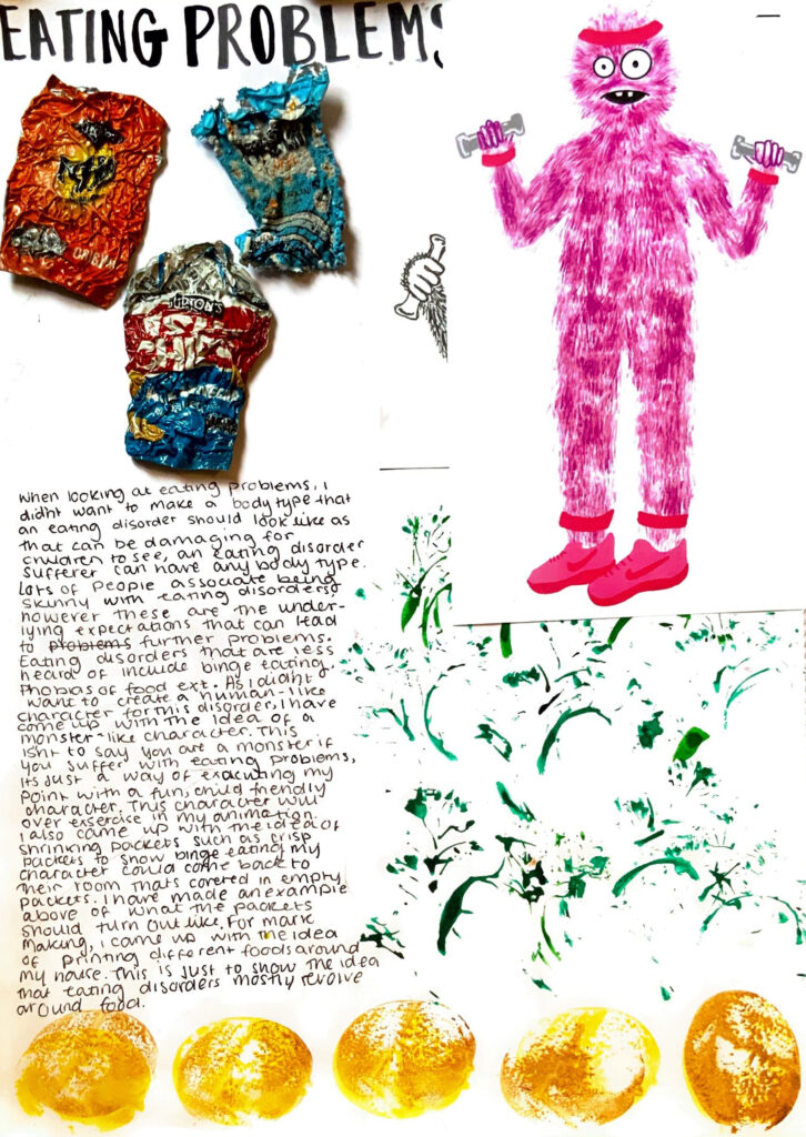 Children’s Mental Health Animation Project On this page you will find my final piece of animation as well as extracts from my sketch book and journal.